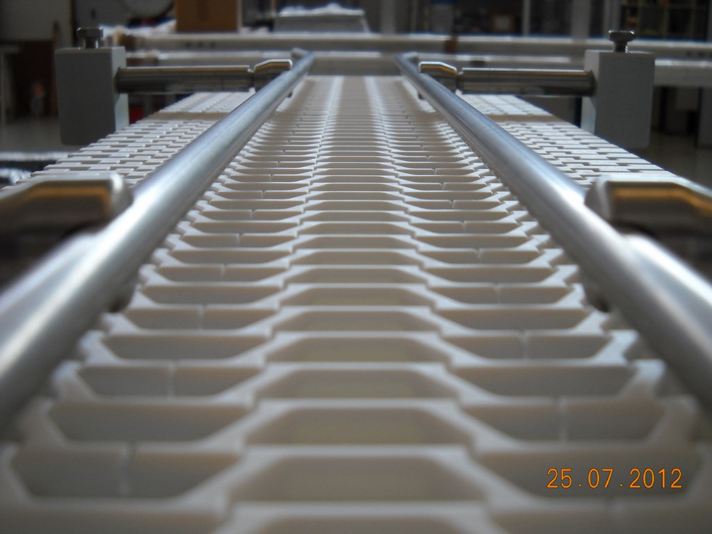 NASTRO TRASPORTATORE CON TAPPETO A MAGLIE APERTE E SOFFIATORE SOTTONASTRO PER RAFFREDAMENTO PRODOTTO